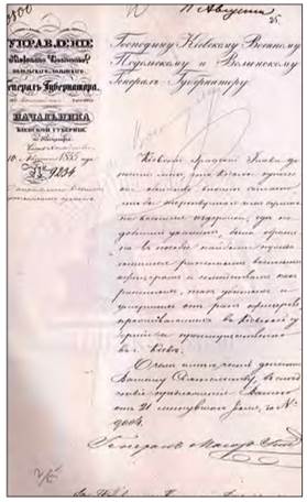 Повідомлення про спрямування пожертв, зібраних купцями Київської губернії, на допомогу пораненим офіцерам та їхнім родинам. 1855 р.
