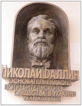 Меморіальна дошка засновнику українського кооперативного руху М. Балліну на будівлі Харківської обласної спілки споживчих товариств. Відкрито 20 вересня 2003 р.