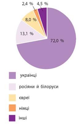 Робота в парах. За схемою охарактеризуйте особливості національного складу населення українських земель у цей період.