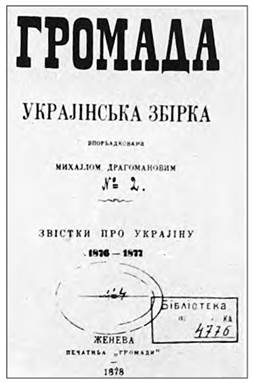 Наступ на українську культуру в 1875—1876 рр. змусив М. Драгоманова залишити рідні землі. У Женеві (Швейцарія) він разом з іншими українськими політемігрантами видавав перший український політичний журнал «Громада» (1878—1879, 1880, 1882 рр.). Цей часопис став друкованим органом, де були узагальнені погляди громадівців і висунуто програму українського руху. В основі програми лежали такі принципи, як демократизм (запровадження демократичних прав і свобод та відповідних установ, які б їх захищали), федералізм (здобуття національно-культурної автономії України у складі федеративної держави), культурництво (покращення освітнього рівня народу), еволюційність (упровадження нового ладу шляхом поступових реформ), соціалізм (запровадження принципу соціальної справедливості). У програмі також зазначалося, що тенденції українського руху збігаються із загальним напрямом загальнолюдського прогресу. Однак такі погляди М. Драгоманова для діячів Старої громади виявилися занадто радикальними. Після взаємних звинувачень вони припинили співробітництво. У 1889 р. М. Драгоманов переїхав до Софії (Болгарія), де займався викладацькою діяльністю в Софійському університеті.