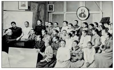 X. Алчевська проводить урок читання в Харківській жіночій недільній школі