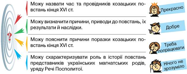 Оцініть свої успіхи в опануванні теми «Козацькі повстання кінця XVI ст.».