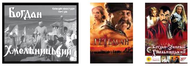 3. Розгляньте постери кінофільмів, присвячених Б. Хмельницькому, але створені в різні роки. Якими рисами наділили художники образ Богдана Хмельницького на постерах?