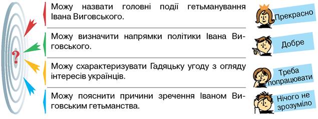 Оцініть свої успіхи в опануванні теми «Іван Виговський. Гадяцька угода. Українсько-московська війна. Конотопська битва».