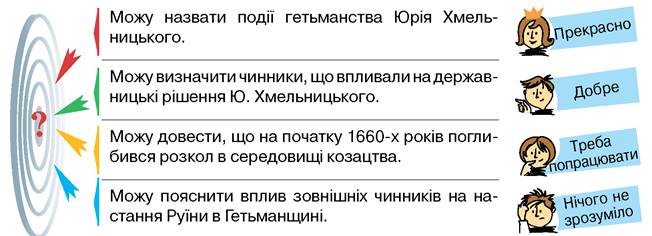 Оцініть свої успіхи в опануванні теми «Початок Руїни. Юрій Хмельницький. Розкол Гетьманської держави».