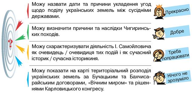 Оцініть свої успіхи в опануванні теми «Іван Самойлович. Чигиринські походи. Бахчисарайський мир. “Вічний мир”.»