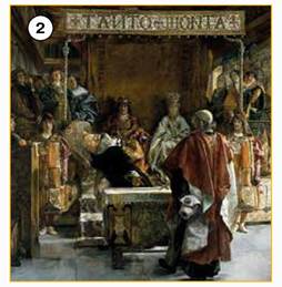 2) Томас Торквемада пропонує католицьким монархам на підпис указ про вигнання євреїв з Іспанії (Еміліо Сала Франсеса, 1889 р., музей Прадо)