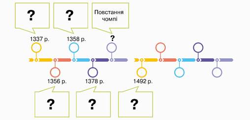 За матеріалами параграфа встановіть події, які пропущені на лінії часу. Усно доповніть її.