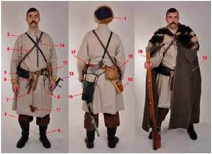 Розгляньте зображення комплекту одягу, озброєння та спорядження козака-реєстровця армії Богдана Хмельницького (реконструкція Тараса Тимчака). За допомогою QR-коду встановіть назви кожної деталі одягу, представленої на зображенні. Порівняйте зображення з образом козака, який вам відомий з художніх фільмів, відеоігор тощо. Що нового про вигляд та одяг українського козацтва ви дізналися?