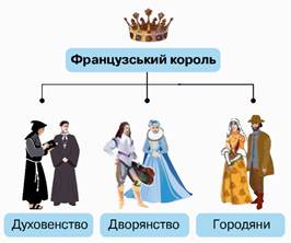 Розгляньте мініатюру і схему. Яким міг бути вплив станових представницьких органів влади на монархів? Чому монархи змушені були зважати на інтереси різних станів суспільства?