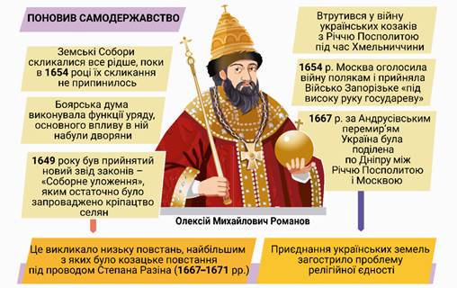 «Проте перехід України від Польщі до Росії важко переоцінити. Московія дістала економічні ресурси і геополітичну позицію, необхідні, щоб стати великою державою... Формула «Московія + Україна = Росія»... має фундаментальне значення. В такому разі справжнім засновником Російської імперії був Олексій Михайлович, а не його... син Петро».