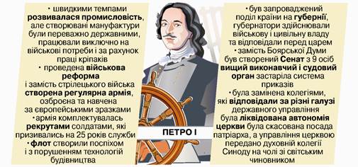 Реформи сприяли військовому зміцненню Московії. Після поразки шведсько-української армії під Полтавою в червні 1709 р. стався перелом у Північній війні. Ніштадський мир 1721 р. приніс Росії частину Балтійського узбережжя та вихід до моря.