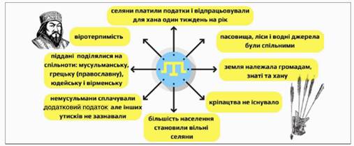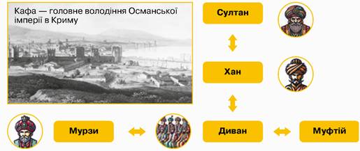 Об’єднайтеся в групи. Визначте основні риси політичної системи Кримського ханства. Як можна схарактеризувати українсько-кримськотатарські відносини в XVI—XVII ст.? Результати роботи представте у вигляді інфографіки або мапи думок.