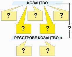 Об’єднайтеся в групи. За допомогою додаткових джерел інформації проаналізуйте становище запорозького та реєстрового козака. Результати роботи представте у вигляді мапи думок або інфографіки.