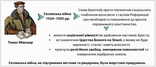 З релігійних настанов робилися політичні висновки. У 1524 р. виступили німецькі селяни.