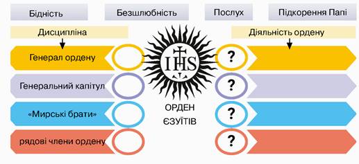 За допомогою QR-коду перегляньте відео від каналу «Нова школа» на тему «Реформація і Контрреформація. Крок 11. Орден єзуїтів». Скористайтеся набутими знаннями і за допомогою матеріалів параграфа доповніть інфографіку.