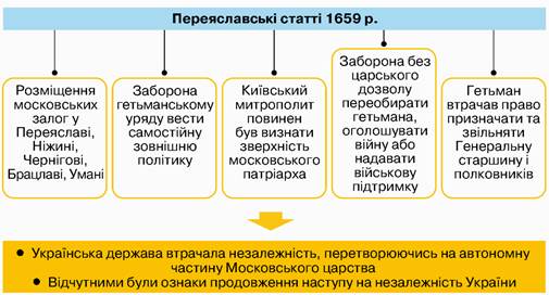 28 вересня 1659 р. Генеральна рада обрала новим гетьманом Юрія Хмельницького. В умовах вторгнення московських військ він був змушений 17 жовтня 1659 р. укласти Переяславські статті з Московським царством.