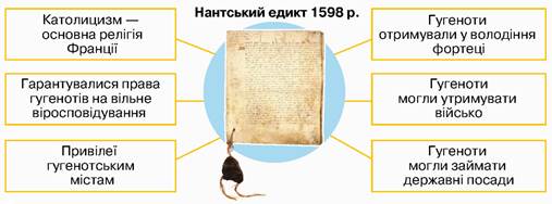 Так, після драматичних релігійних воєн, що тривали 36 років, Францію очолила династія Бурбонів. Установлення миру ознаменувалося підписанням Нантського едикту 1598 р.