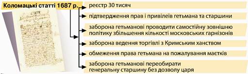 Після усунення від влади Івана Самойловича у липні 1687 р. новим гетьманом Лівобережної України було обрано Івана Мазепу. Він уклав із Московією нову угоду — Коломацькі статті, за якими додатково обмежувалися права Української козацької держави.