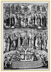 Іван Мазепа в оточенні своїх добрих справ (Іван Мигура, гравюра, після 1712 р.)