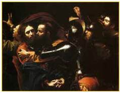 З’ясуйте, що таке в мистецтві «картуш» і «трофеї». Чи використовуються такі мотиви в наш час? Який біблійний сюжет став основою твору «Христа беруть під варту»? Чим оригінальний стиль Караваджо?