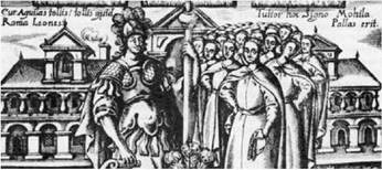 Корпус Києво-Могилянської академії (Іван Щирський, фрагмент гравюри 1698 р.)