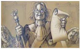 Розгляньте ілюстрацію Юрка Журавля «Гнів Петра» до книги «Мазепа. Крок до правди» (2008 р.). Яку подію зобразив автор? Що саме у стосунках царя і гетьмана він намагався передати?