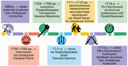 - 1. Чому ліквідація козацького устрою на Правобережжі призвела до загострення соціально-економічних та релігійних конфліктів?