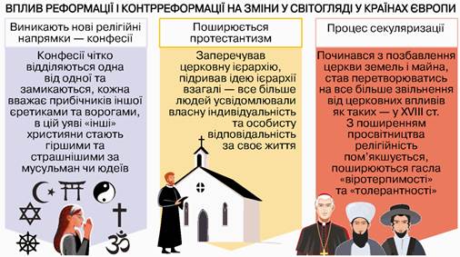 Реформація та Контрреформація справили визначний вплив на зміни релігійного світогляду в усіх країнах Європи.