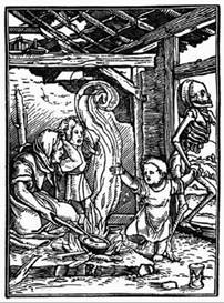 Смерть забирає дитину (Ганс Гольбейн Молодший, гравюра із серії «Танець смерті», Базель, 1538 р.)