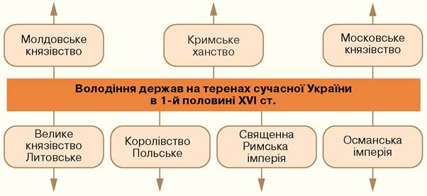 § 2. Українські землі як об’єкт претензій держав Європи й Азії в першій половині XVI ст.