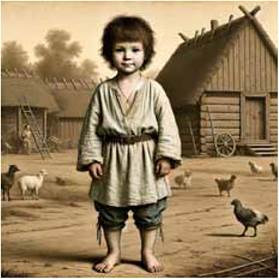 Поміркуйте, чим відрізнялося повсякдення дітей заможних і незаможних родин. Придумайте розповідь «Один день із життя дитини в селянській І міщанській родині». Розгляньте згенеровану з допомогою ШІ ілюстрацію та висловте припущення, якими стереотипами керувалася система, створюючи малюнок.