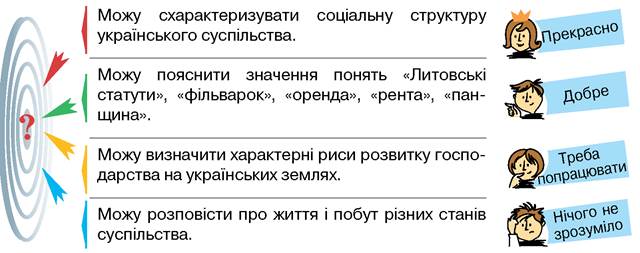 Оцініть свої успіхи в опануванні теми «Соціально-економічне становище українських земель у XVI ст.».