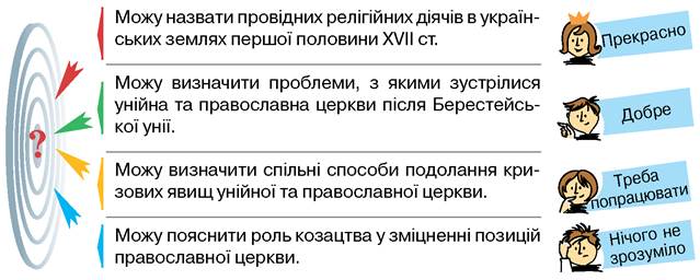 Оцініть свої успіхи в опануванні теми «Церковне життя в Україні першої половини XVII ст.».
