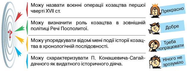 Оцініть свої успіхи в опануванні теми «Походи козаків першої чверті XVII ст. Петро Конашевич-Сагайдачний».