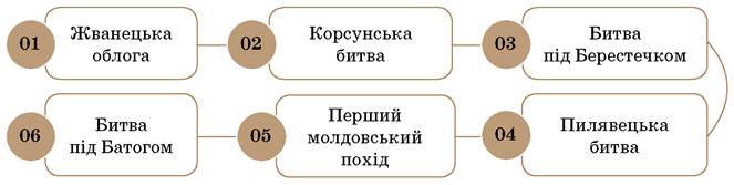Оцініть свої успіхи в опануванні теми «Битва під Батогом. Молдовські походи. Жванецька битва».