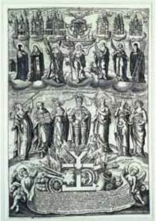 Гетьман Іван Мазепа серед своїх добрих справ (гравюра роботи Івана Мигури-Плаксича, 1706 р.)