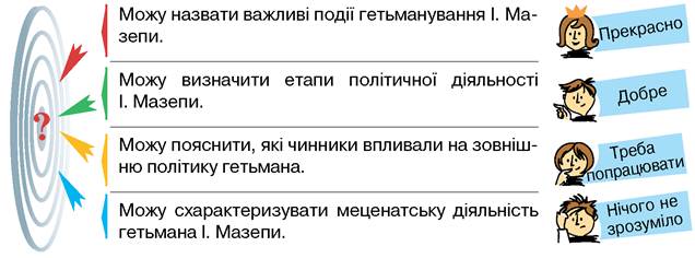 Оцініть свої успіхи в опануванні теми «Гетьманщина за часів Івана Мазепи».