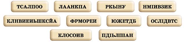 2. Розгадайте анаграми й об’єднайте слова-відповіді за тематикою.