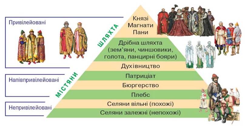 3. Які верстви населення українських земель першої половини XVI ст. були привілейованими, а які — ні? Чим відрізнялося їхнє становище?