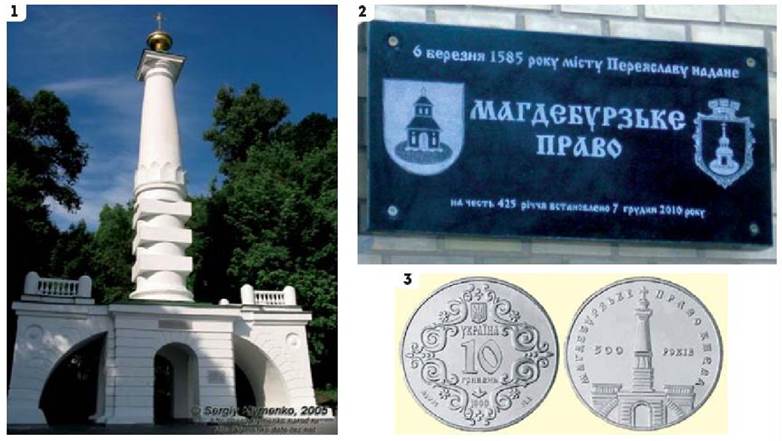 2 — меморіальна дошка на честь надання магдебурзького права м. Переяславу;