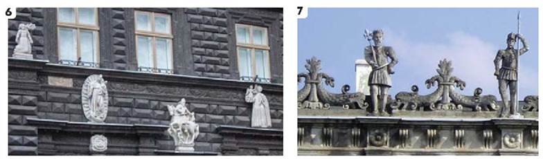 6, 7 — скульптури Чорної кам’яниці та будинку Корнякта, м. Львів;