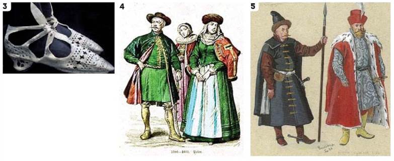 5 — малозаможний шляхтич XVI ст.: на ньому ярмяк із золотими шнурами, жупан17 (ліворуч) і поруч луцький суддя Гаврило Васильович Бокій: шуба з горностая, покрита китайкою, вбрання із червоного фалендишу18, сірий жупан з візерунчастого атласу, підперезаний оксамитним поясом (праворуч), сучасна реконструкція