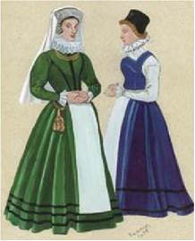 У першій половині XVI — XVII ст. сукні шляхтянок шилися за іспано-німецькими зразками, інколи — за італійськими. Із середини XVII ст. ...запанувала французька мода... Знатні жінки полюбляли оксамитові кунтуші зі шнурівкою із золотої парчі, шапочки з хутра соболя (з діамантовим пером), червоні чобітки, унизані перлами із золотими підковами.