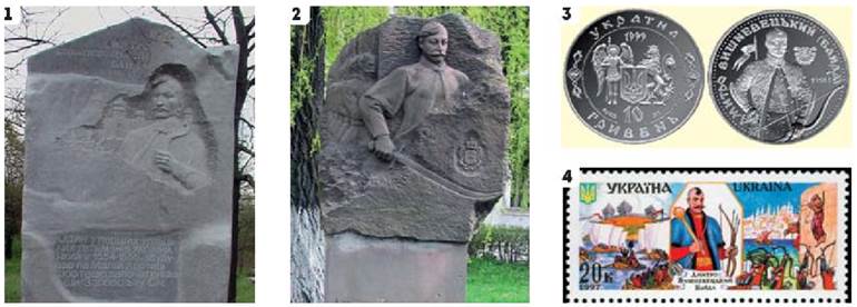 2. Розгляньте зображення. Поясніть, що їх об’єднує. Яким бачать Дмитра Ви- шневецького сучасні митці? Порівняйте свої думки з поданим далі текстом.