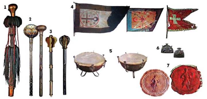 5 — литаври — військові клейноди, що зберігалися в довбиша;