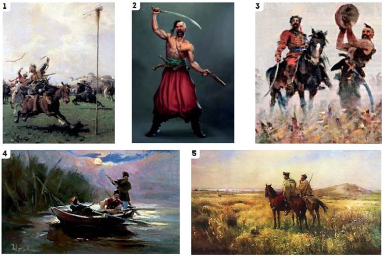На основі творів живопису розкажіть про озброєння, військові вміння, тактику та бойовий дух козаків. Як ви вважаєте, яку роль у перемогах козаків відігравав цей бойовий дух? Свою думку поясніть.