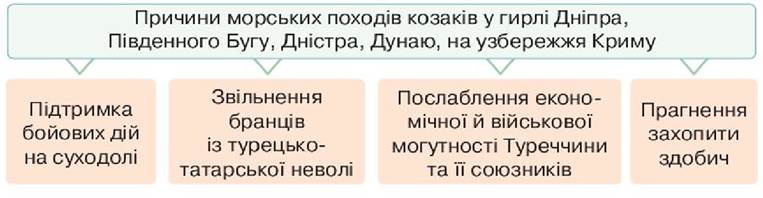 2. Які морські походи здійснювали козаки на початку XVII ст.?