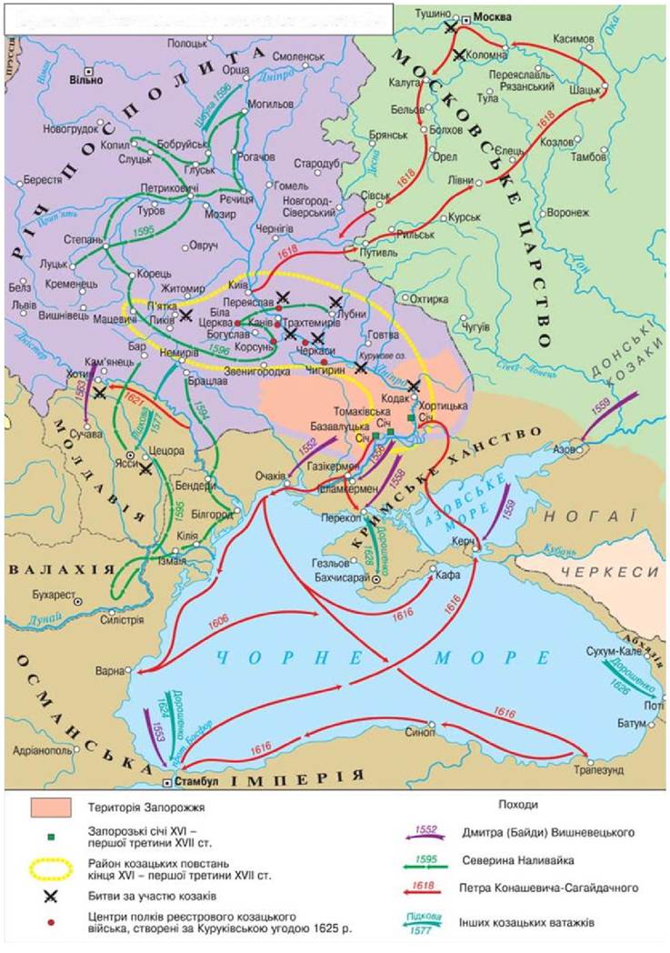 1. ЯК ВІДБУВАЛИСЯ СУХОДІЛЬНІ ПОХОДИ ЗАПОРОЗЬКИХ КОЗАКІВ У XVI — ПЕРШІЙ ПОЛОВИНІ XVII ст.