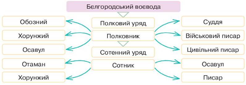 На Слобожанщину було перенесено й козацький адміністративний устрій: тут створювалися козацькі полки, що стали військовими та адміністративно-територіальними одиницями. В адміністративних і військових питаннях ці полки було підпорядковано бєлгородському воєводі.